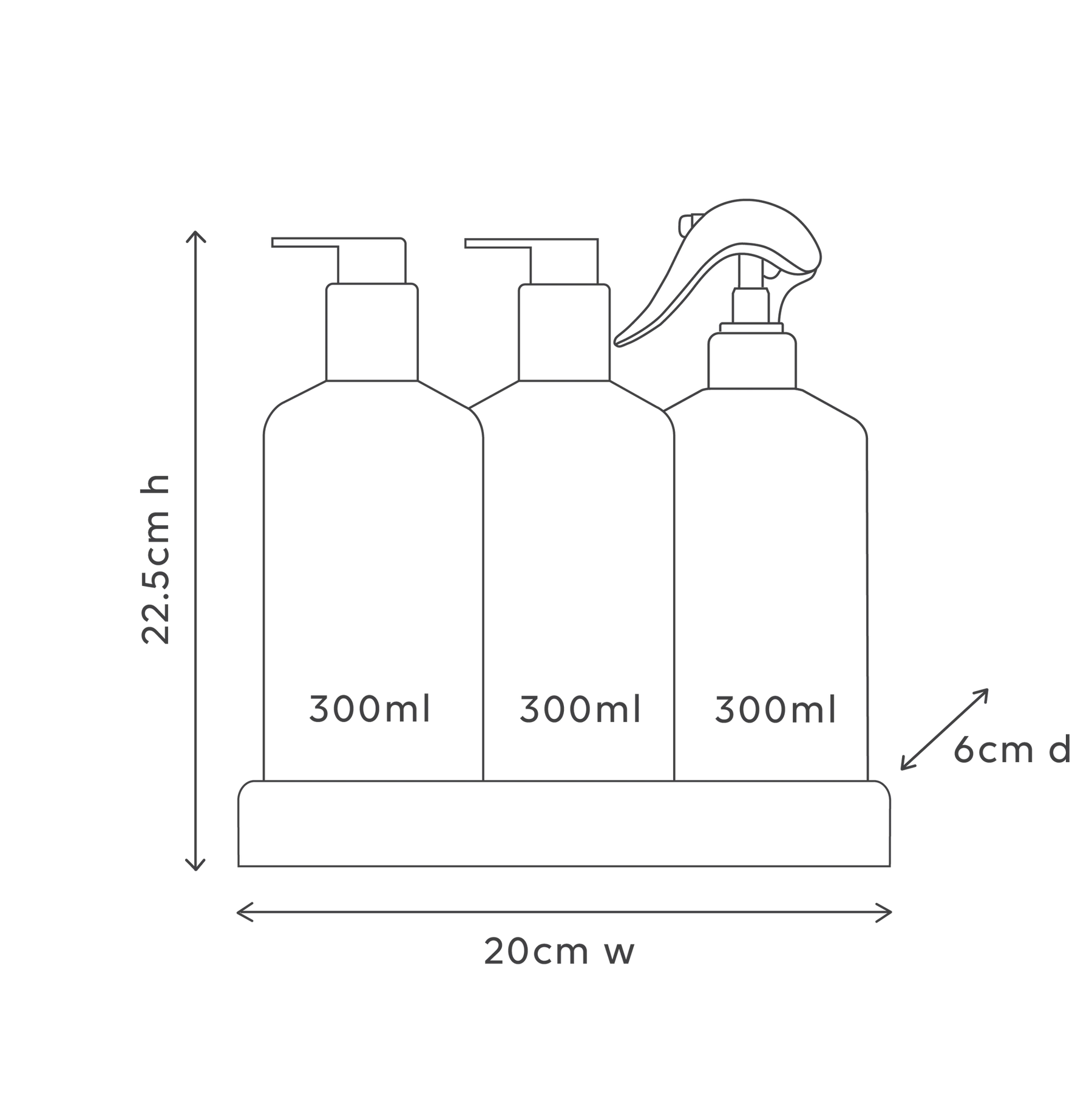Our 300ml bottles are 100% recyclable and made from HDPE plastic, our trays are made from ABS plastic, for its durability and are designed for longevity.