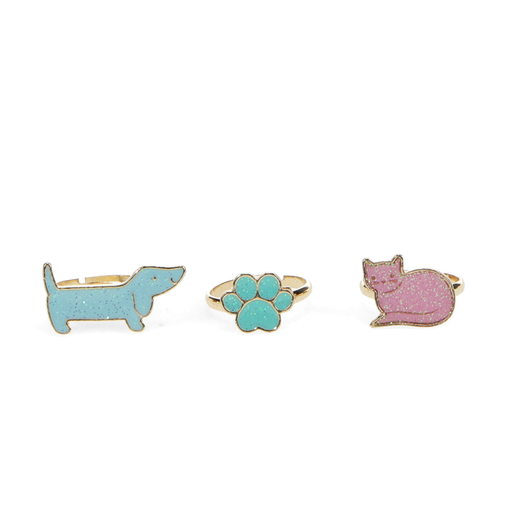 Give your outfit a pop of sparkle with these sausage dog, paw print and cat glitter rings. Wear them together or share with friends, and add a touch of glittery fun to any outfit!