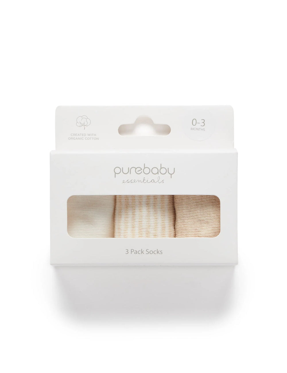 Purebaby Essentials 3 Pair Sock Pack - Wheat/Melange/Vanilla
