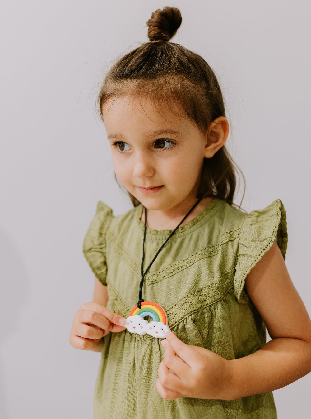 A calm child is able to interact with the world around them and more effectively process feedback without stressing their nervous system. You can help your child to be in control of their emotions by encouraging them to wear the newest addition to the Jellystone Juniors range of silicone jewellery: the sweet and smiling Rainbow Necklace!