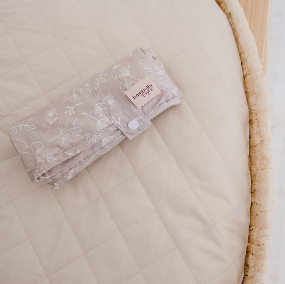 Bambella waterproof change mats can be used at home, or when out and about. Simply roll up, and pop in your nappy bag, and you are prepared for anything! Our compact design features a 100% cotton outer, as well as a hidden waterproof layer. The luxe bamboo velour backing is absorbent and ultra-soft. No matter where your day takes you, you'll be sure to have a clean and cozy spot for nappy changes.