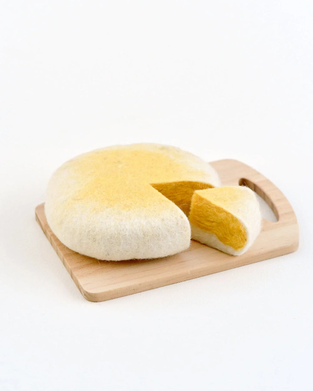 Elevate your child's pretend supermarket experience with our charming Felt Brie Cheese. Meticulously crafted with attention to detail, this classic French cheese adds a touch of sophistication to any toy kitchen or play grocery store.