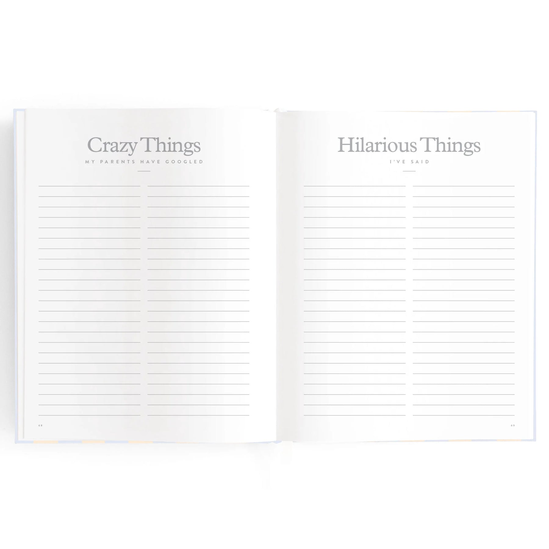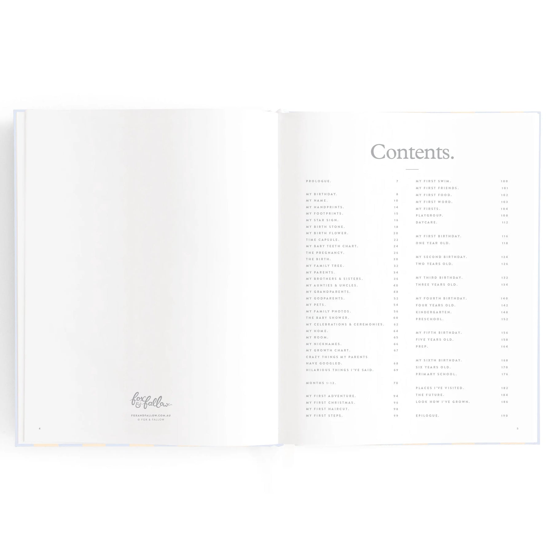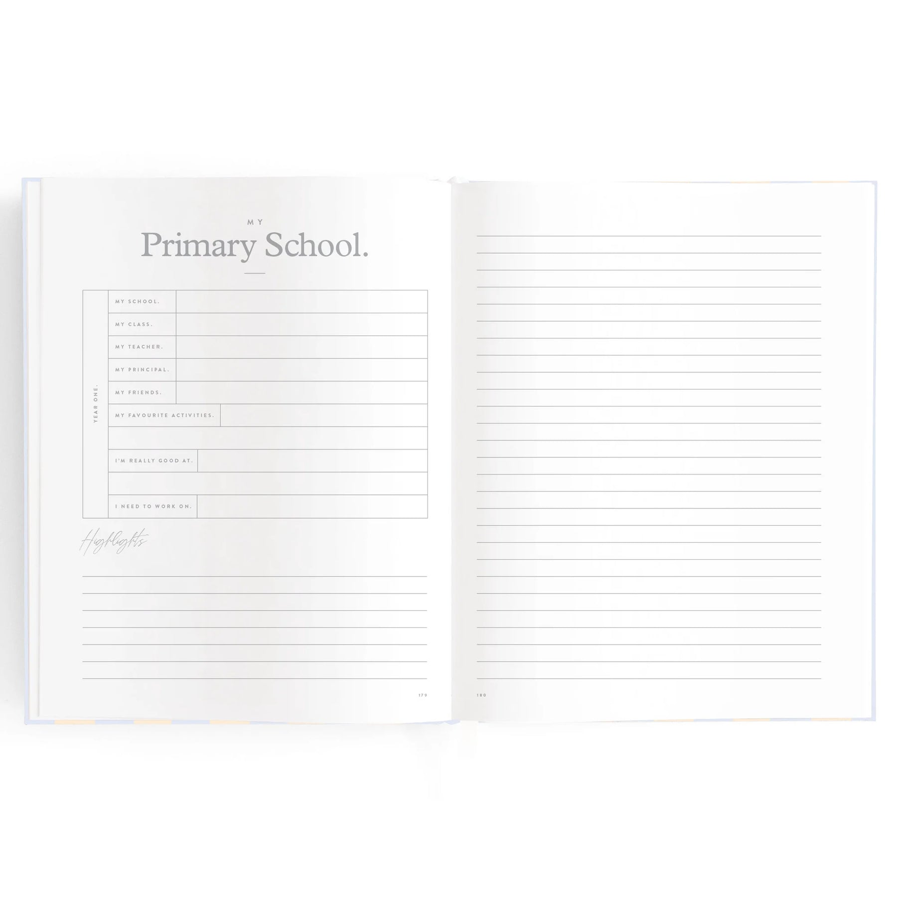 A beautiful keepsake for the whole family to enjoy. Includes: important milestones and firsts, family profiles, family tree and travel map, playgroup and daycare through to kindy and school years, time capsule, nicknames and celebrations, pets, friends, birthdays and more. 160 pages.