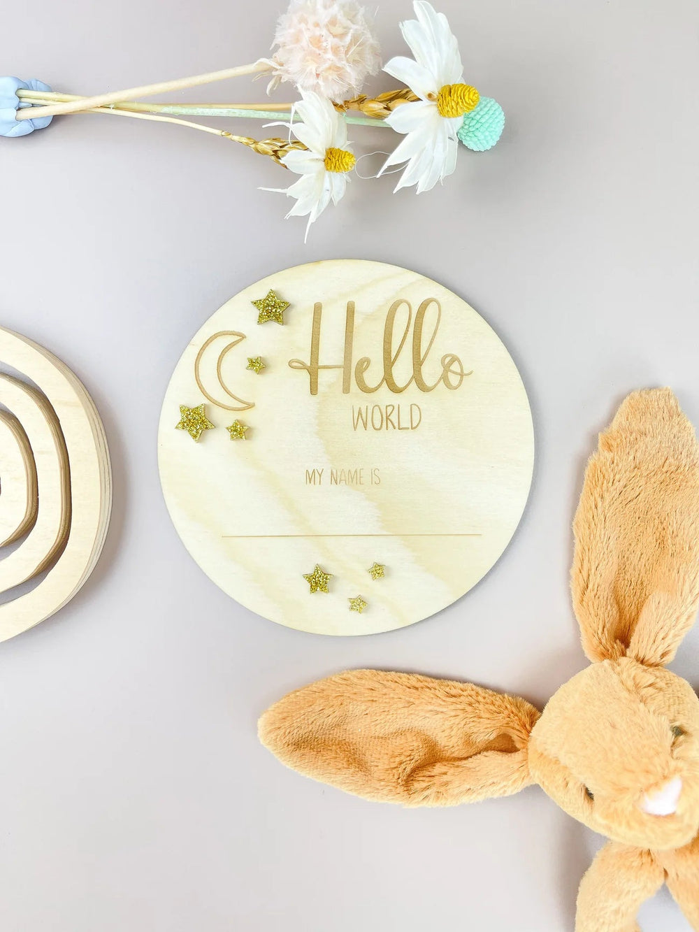Use this Hello World plaque to announce your new arrival to the world, then display as a gorgeous keepsake piece in the nursery afterwards.
