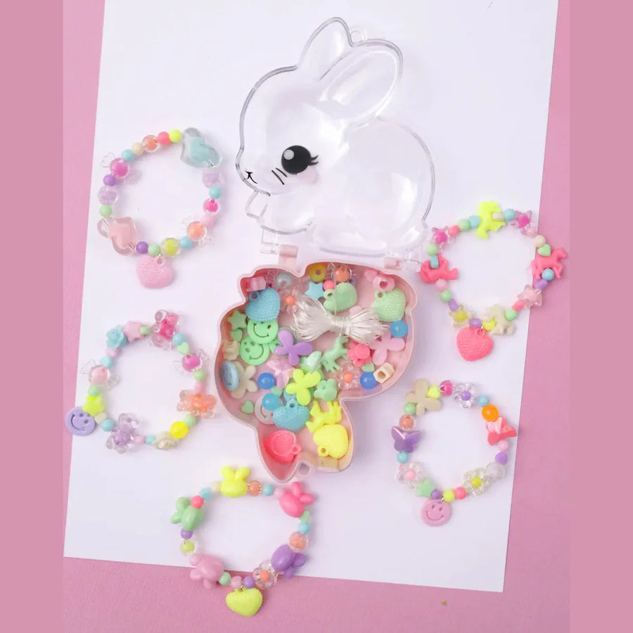 Let your little one make their own beautiful creations with the Tea Party Bunny Bead Kit. This set includes enough beads to make more than five bracelets and comes with beautiful charms of all colours and shapes including horse, bunny, teddy bear, butterfly, and heart charms and so many more.