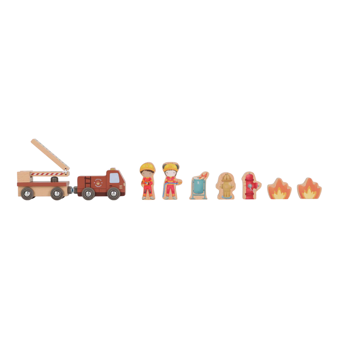 The set includes firefighters, flames, and a burning bin for realistic play. With working station doors, kids can quickly respond to every call. Pair it with the Little Dutch Train Track XL for even more adventure and storytelling possibilities. Who will you rescue today?