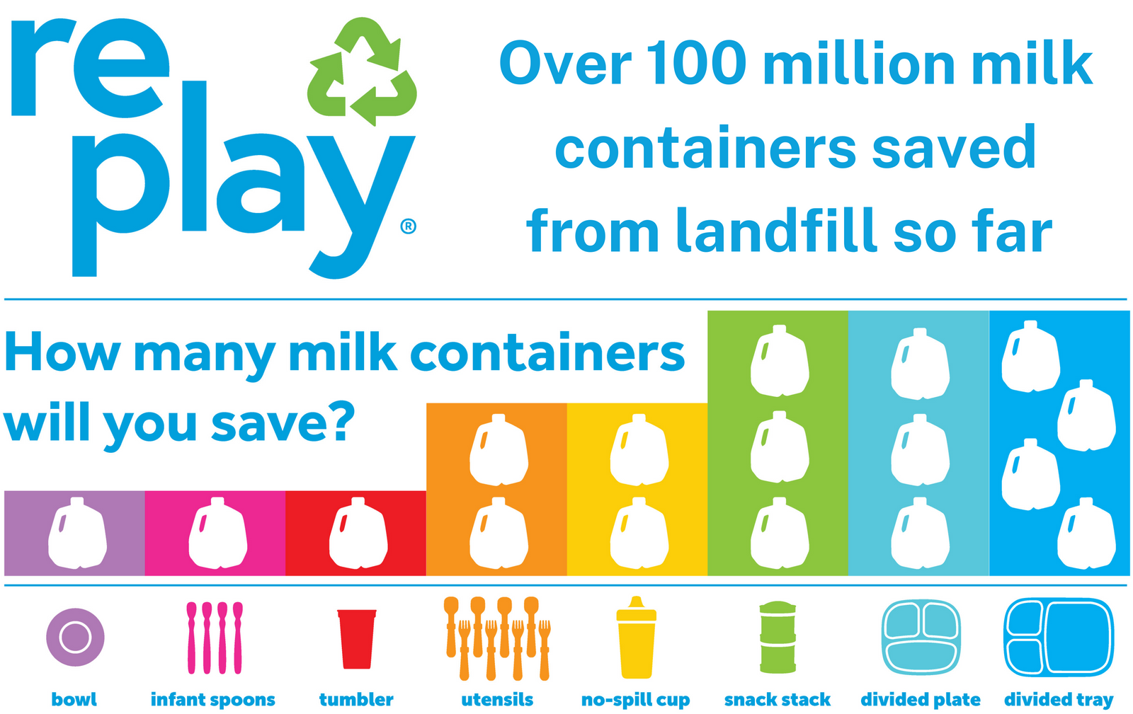 All Re-Play Sippy Cups are made from recycled milk jugs (HDPE recycled plastic), so not only are they better for your child, they are better for your environment! Mix and match cups with Replay utensils, plates, and bowls to create a vibrant tableware set!
