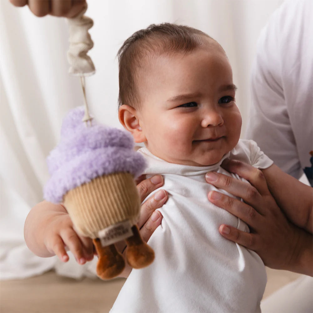 Keep your little one entertained when out and about with our gorgeous Mini Market Brunch stroller toys. Our Ice Cream & Cupcake is made from polyester plush and features a soft rattle to enhance the play experience. They attach easily to any stroller/pram hood, bumper bar, or even baby's play-gym or car seat.