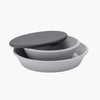 The BIBS Dinner Plate Set consists of a plate and a bowl. The bowl comes with a lid. The Dinner Plate Set promotes the social benefits of eating together with small children.