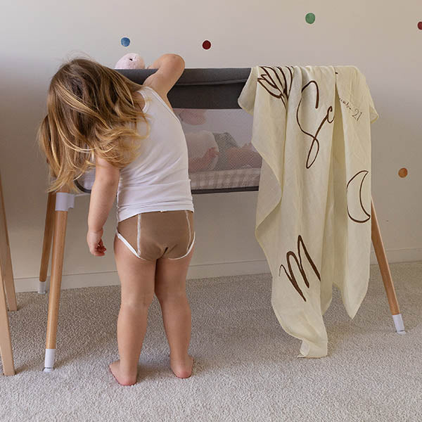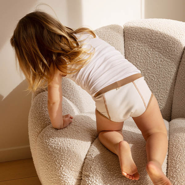 Engineered with care and consideration, our reusable training pants are crafted from a luxuriously soft and stretchy organic cotton blend with a double layered absorbent core. With easy on-and-off functionality, they're perfect for busy toddlers, providing all-day comfort while still allowing them to sense dampness, gently encouraging them to take their next steps towards independence.