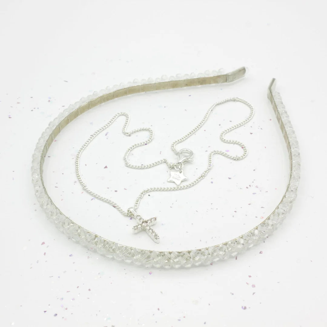 This beautiful silver-plated cross necklace is studded with sparkling diamanté crystals, is light-weight, and suitable for everyday use. It makes a wonderful gift for religious occasions like First Communions and Confirmations or for other special events such as Christmas and birthdays.