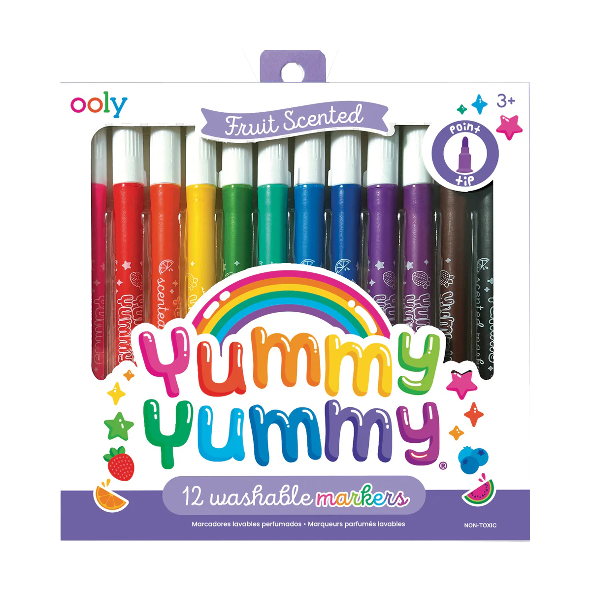 This set of 12 washable markers includes every color in the rainbow and a pointed tip for great functionality. But what will absolutely win you over is their yummy fruit scented goodness! Each scented marker boasts a sweet fruity smell, so using them is always a delicious treat!