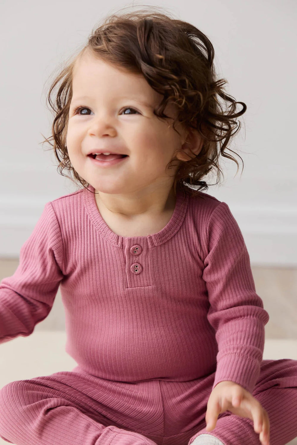 This gorgeous blend is the perfect combination of soft, lightweight, and stretchy. Modal is an extremely forgiving fabrication; it maintains elasticity and is incredibly stain, pill and shrink resistant. Your little one will be super comfortable in this beautifully versatile bodysuit.